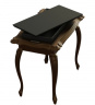 Мангал представляет собой сборную металлическую конструкцию, состоящую из столешницы с четырьмя ножками и собственно короба-мангала, стилизованную под изящный классический столик на гнутых ножках. Короб мангала изготовлен из конструкционной стали с толщиной стенок 2 мм, дно - 3 мм.