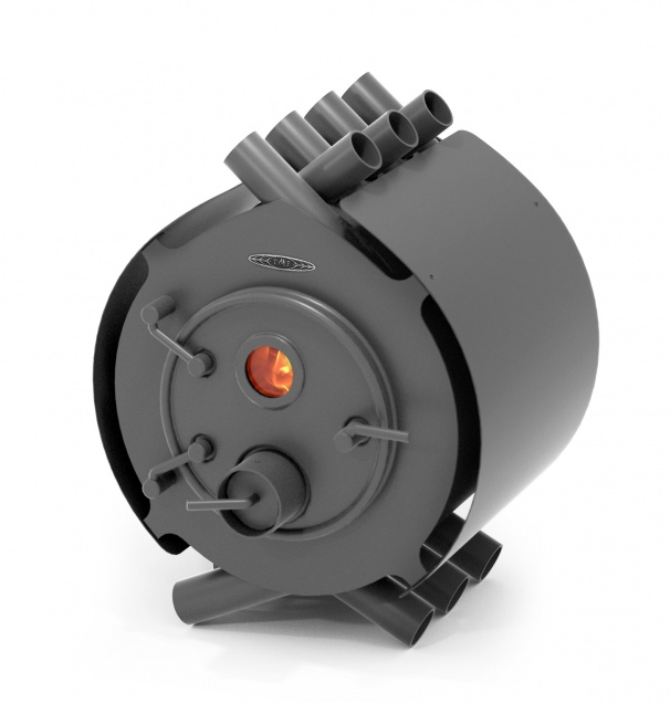 Печь состоит из набора одинаковых конвекционных труб, окружающих топочную камеру. Холодный воздух, проходя по горячим трубам, нагретые излучением от горящего топлива, создает естественную конвекцию, благодаря чему происходит быстрый нагрев воздуха и его плавное распределение по всему объему помещения.